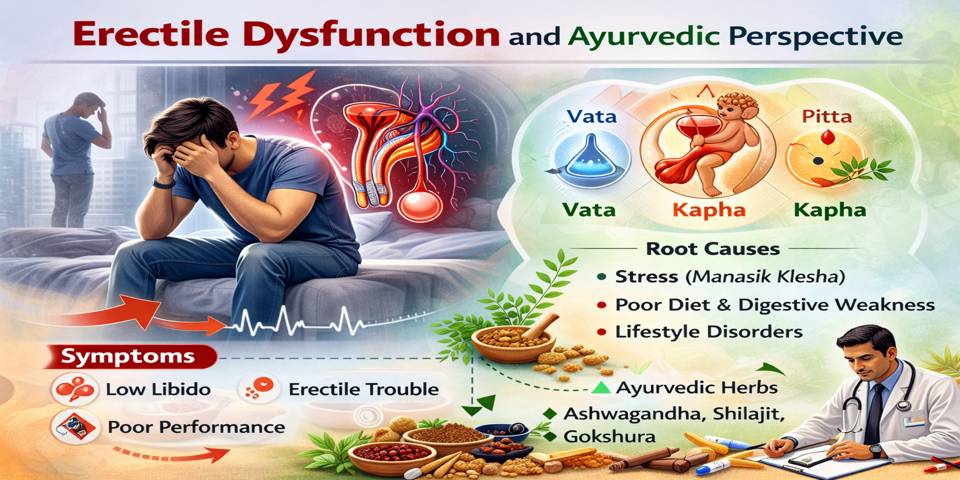 Understanding ED in youngsters requires a dual approach—modern medical science to evaluate physiological causes and Ayurveda to understand the imbalance in body energies (Doshas), mental health, and lifestyle habits.